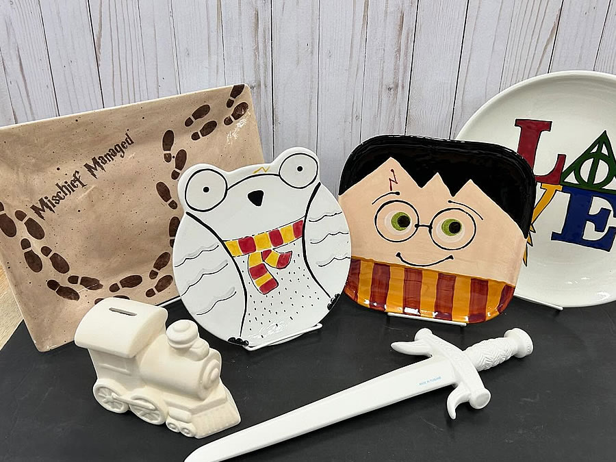 We have over 100 different glaze options to help you create your masterpiece - writer bottles, puffy paint, pottery and crystal glazes.
